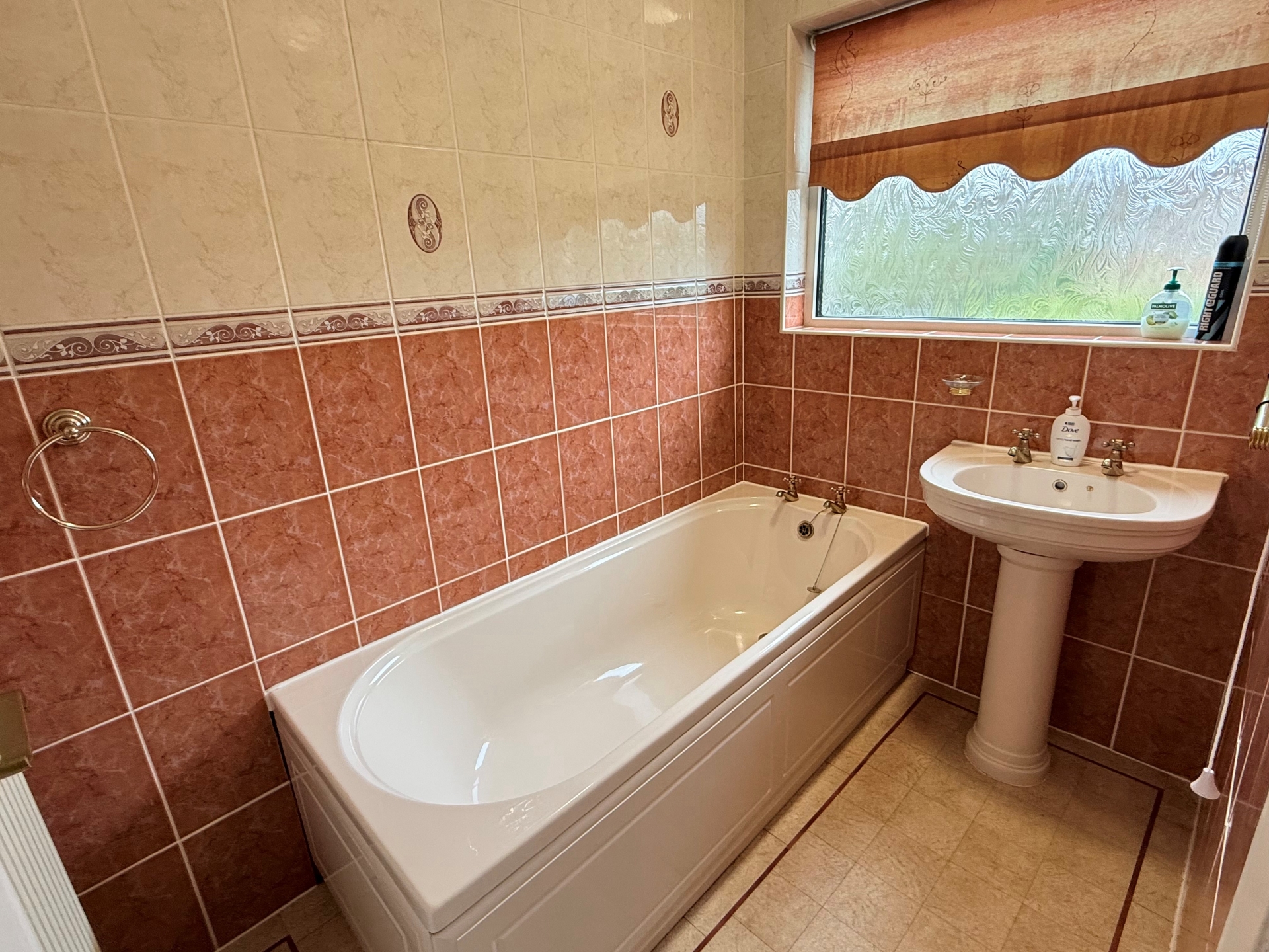 Obscure double glazed window to rear elevation. Radiator. Suite comprising wash hand basin and fully tiled bath. Tile effect flooring.