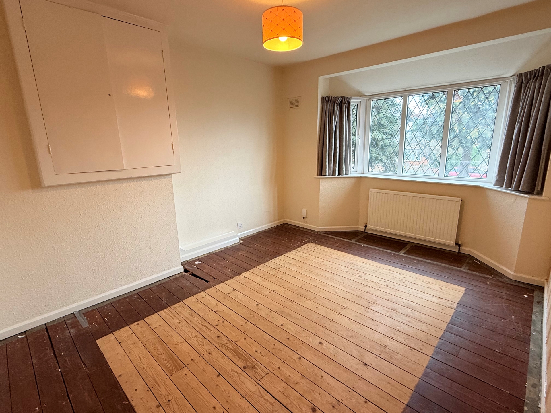 Double glazed bay window to front elevation. Radiator. Exposed floorboards. Storage cupboard.