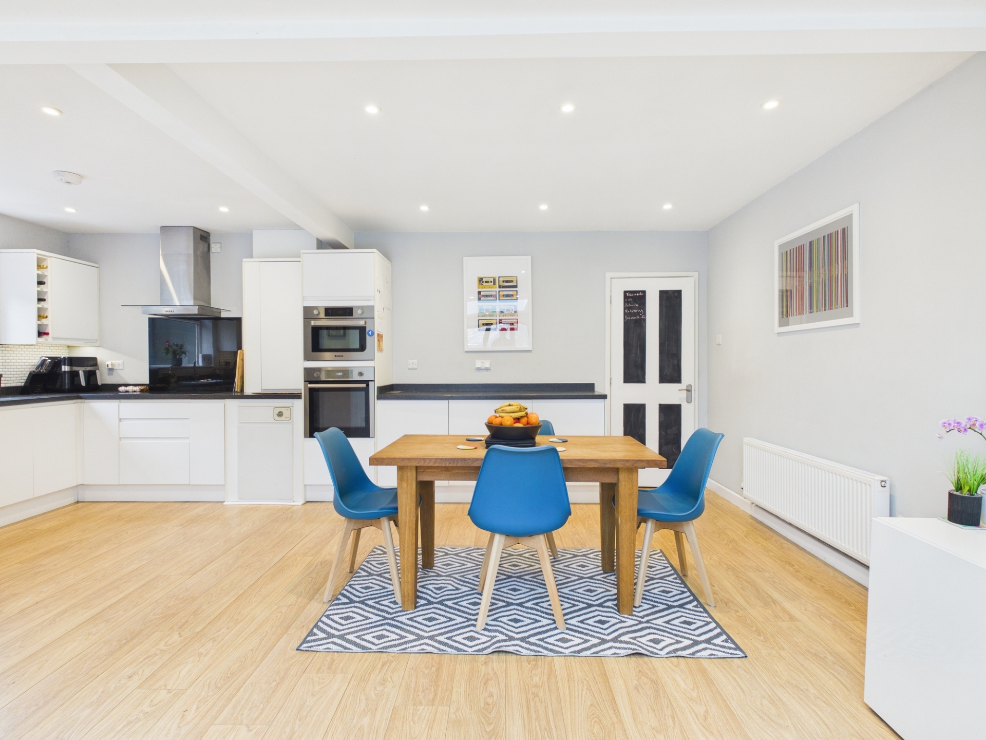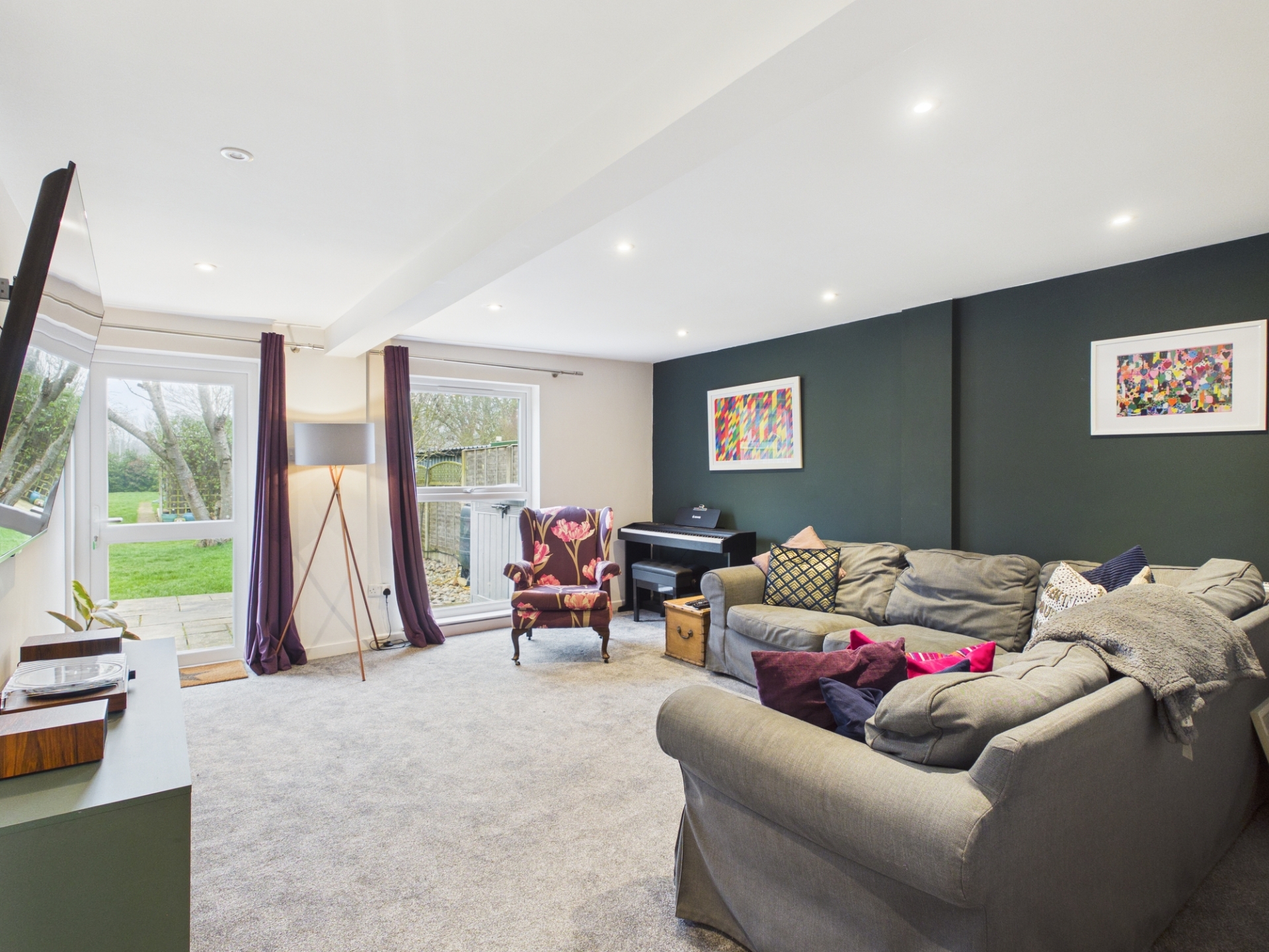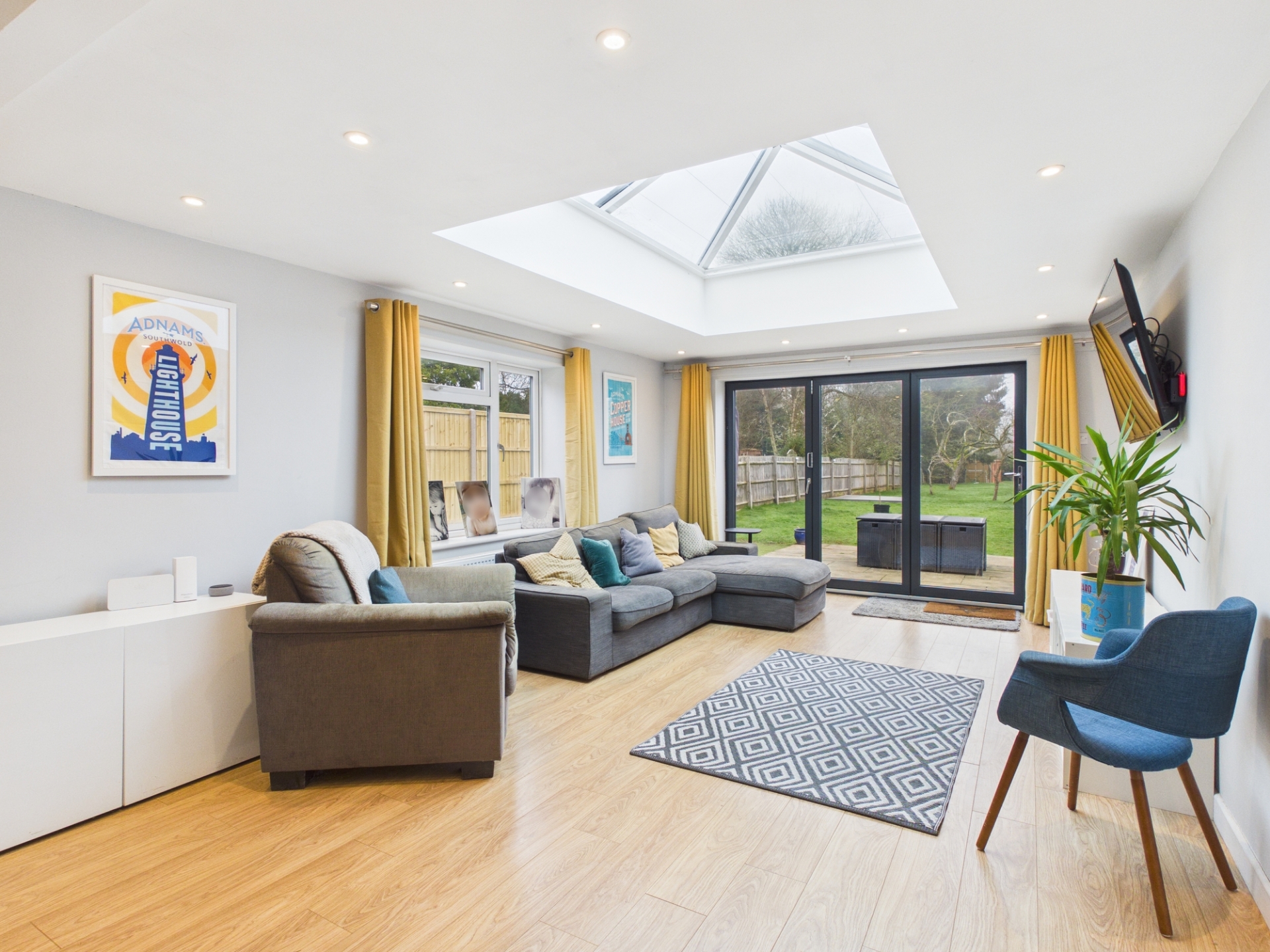 The heart of the home is the stunning open plan kitchen / dining / family space, which features a modern fitted kitchen with ample room for a large dining table. Beyond this, a light filled family area enjoys a striking sky lantern and bi-fold doors that open onto the garden, creating a wonderful space for both everyday living and entertaining.