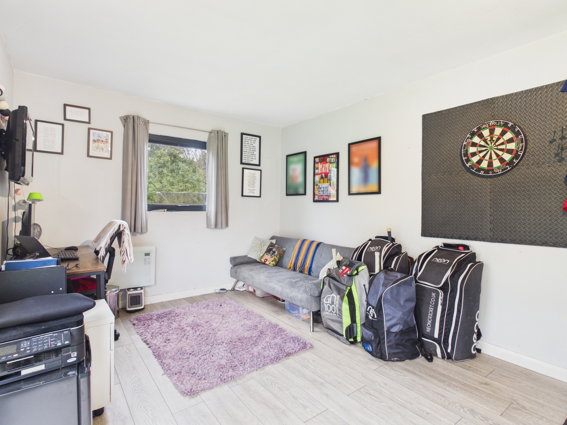Externally, the property continues to impress. To the front, a large gravel driveway provides ample off road parking and includes an electric vehicle charging point. The rear garden is expansive and private, featuring a generous patio area, an extensive lawn, a garden shed and a substantial garden room currently utilised as both a office and gym, offering excellent work from home potential.