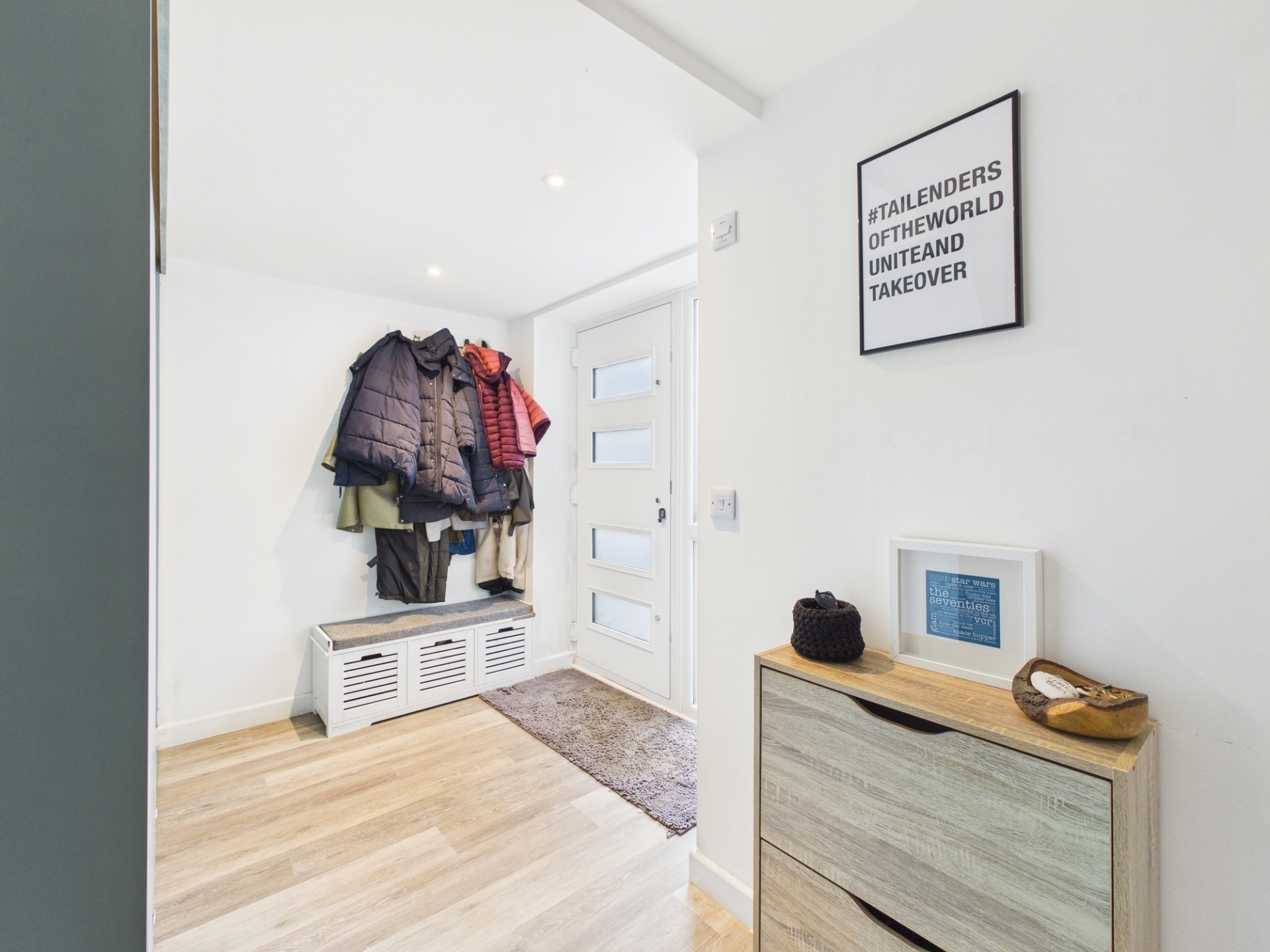 Upon entering, you are welcomed by a spacious hallway featuring a useful utility cupboard with sink and space for white goods. From here, doors lead into a well proportioned yet cosy sitting room and the impressive kitchen / dining / family room.