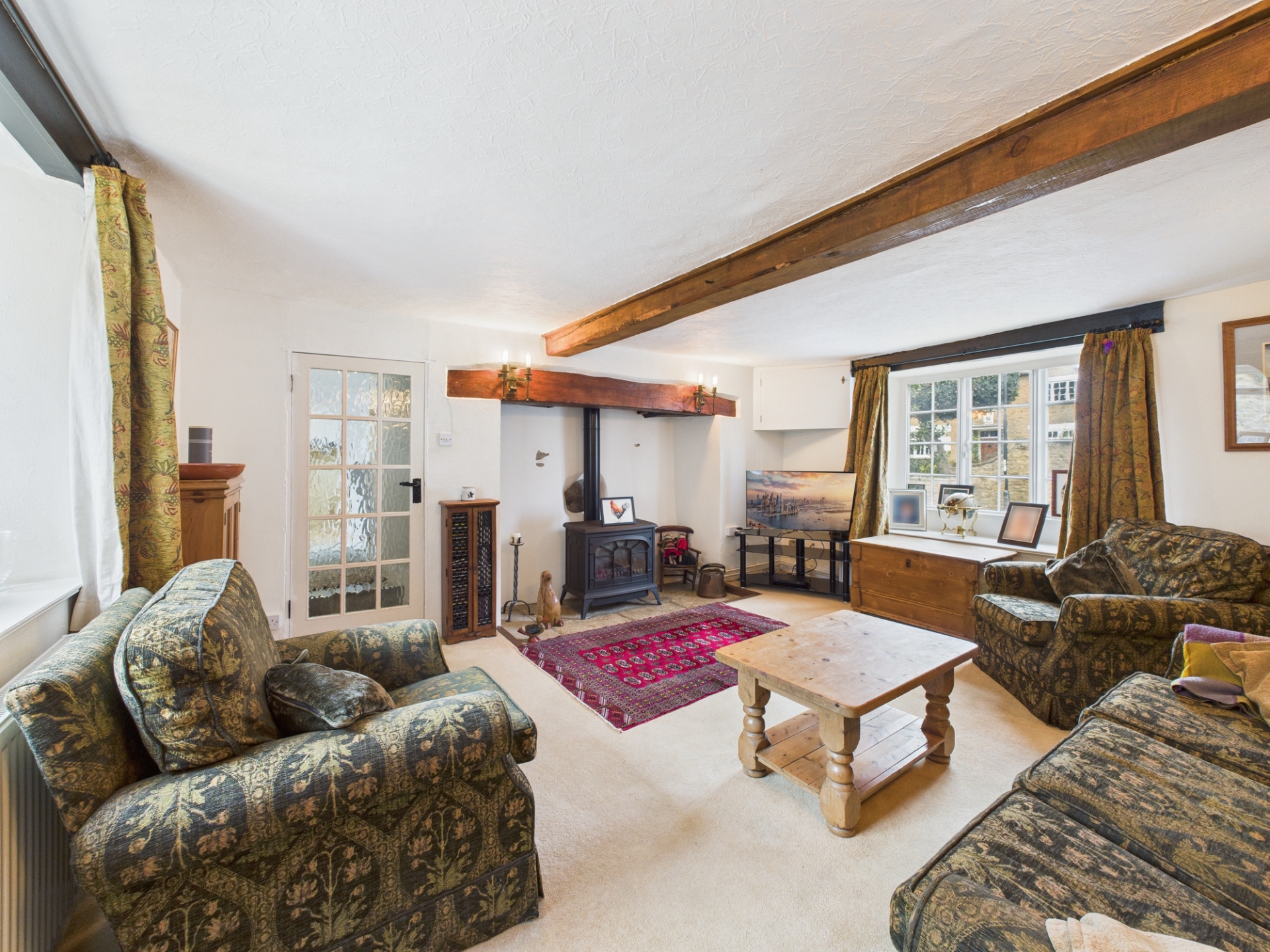 Single glazed window with secondary double glazing to front elevation. Wooden double glazed window to rear elevation. Two radiators. Gas fire. Enter through glass door to kitchen: