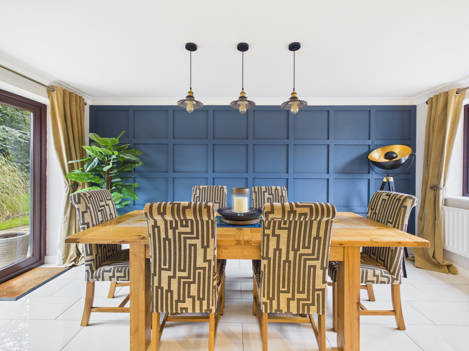 The elegant sitting room offers a fireplace with a coal effect gas fire and bi-fold doors opening into the conservatory. The dining room is equally impressive with a feature panelled wall and double doors leading directly to the garden. There is also a separate study, ideal for home working.