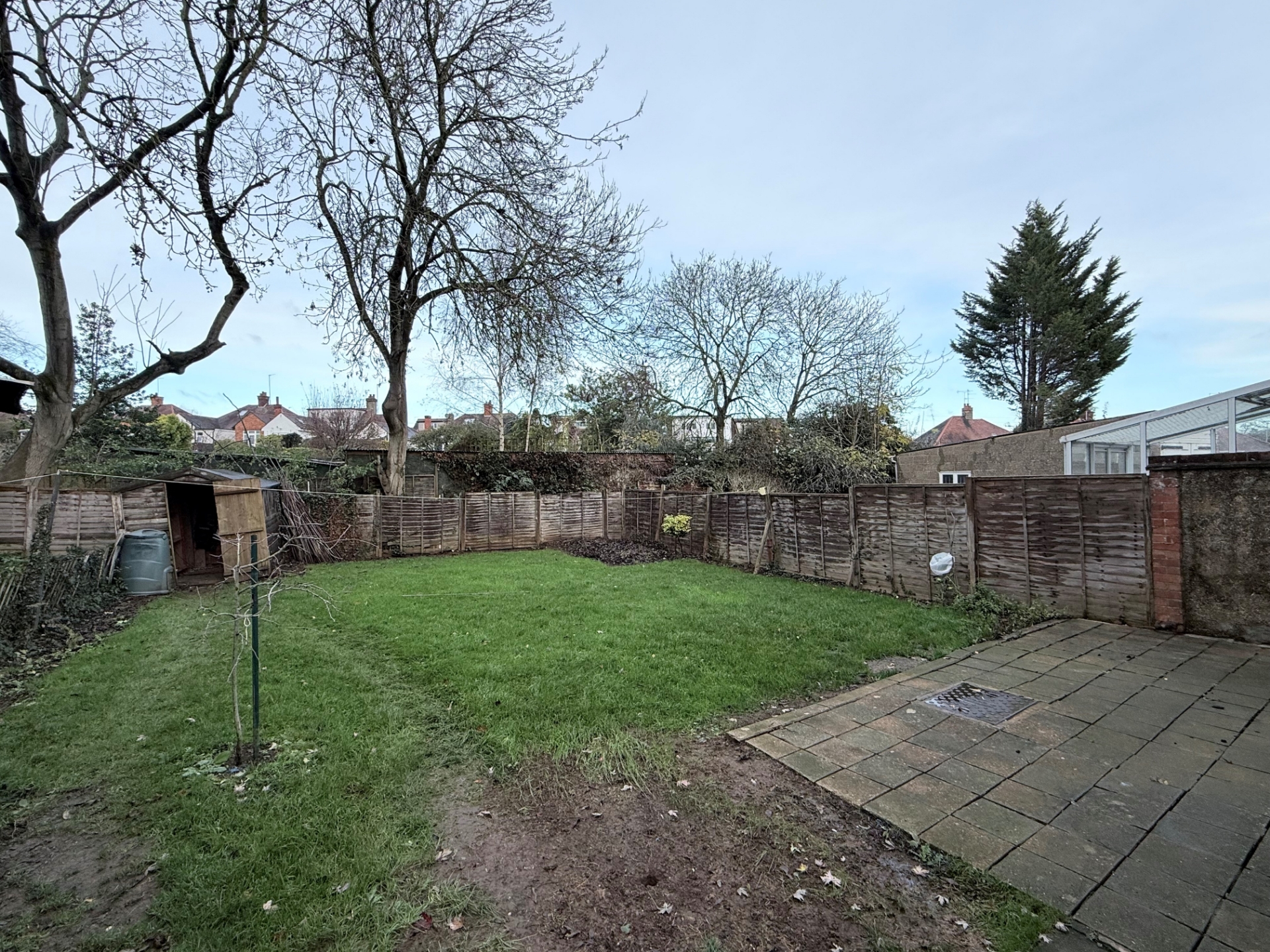 Enclosed panelled fencing to rear and sides, mainly laid to lawn, patio, outbuildings for storage. Side access to front.