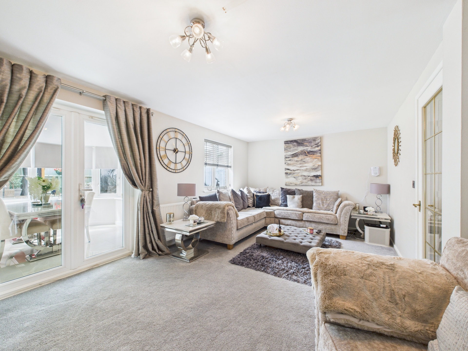 uPVC double glazed window to rear elevation. Radiator. Electric fireplace. Understairs cupboard. uPVC double glazed doors to: