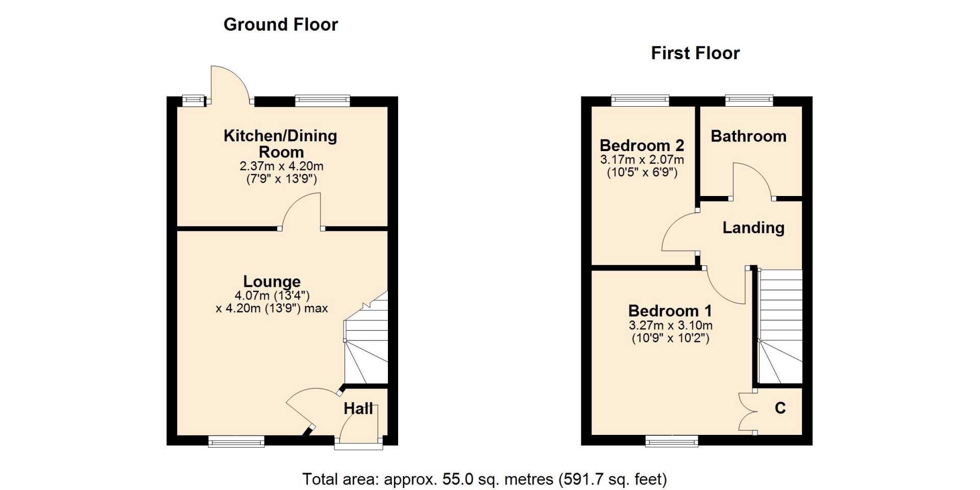 BEDROOM TWO 3.17m x 2.07m (10'5" x 6'10")