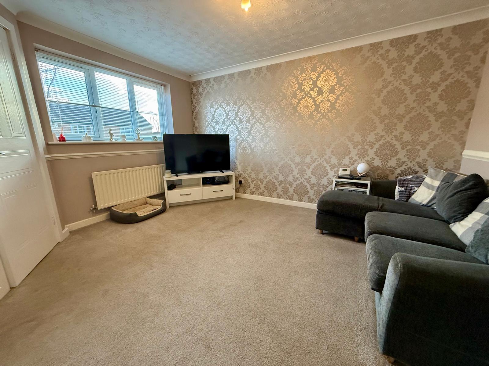 Double glazed window to front elevation. Radiator. Television point. Telephone point. Staircase rising to first floor landing.