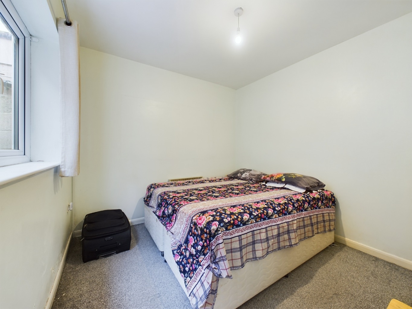 uPVC double glazed bay window to front elevation. Electric storage heater.