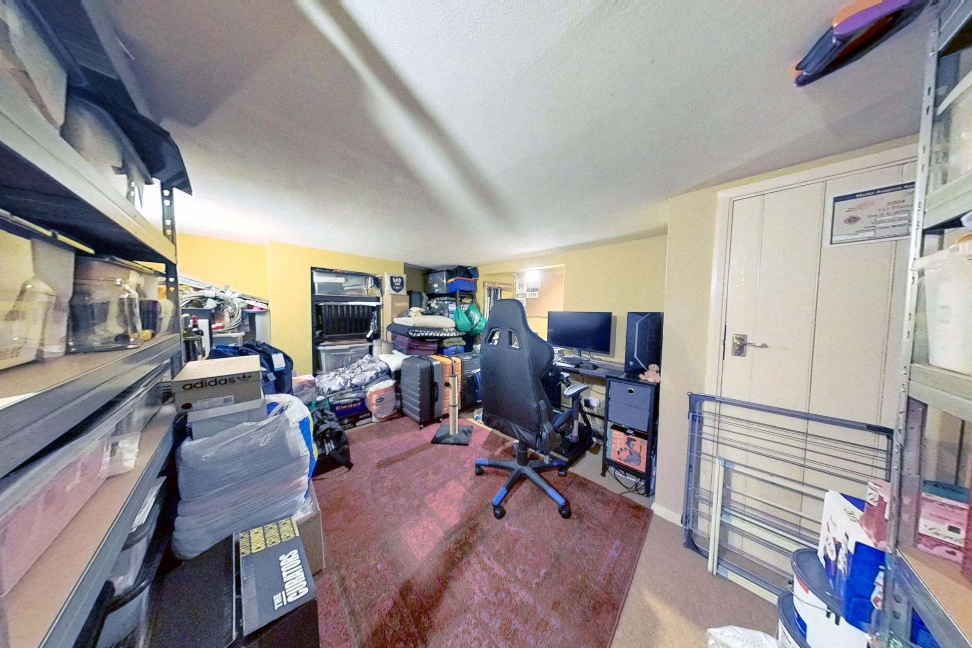 Converted cellar space. Cupboard housing meters.