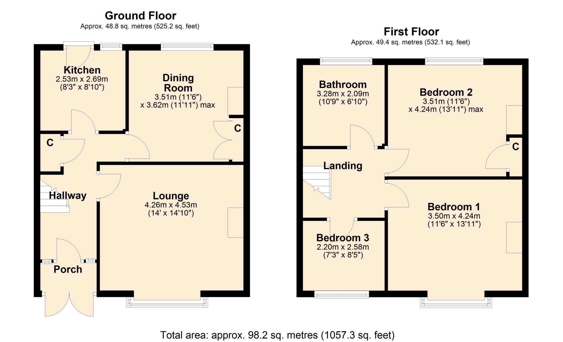 LOUNGE 4.27m x 4.53m (14' x 14'10")
