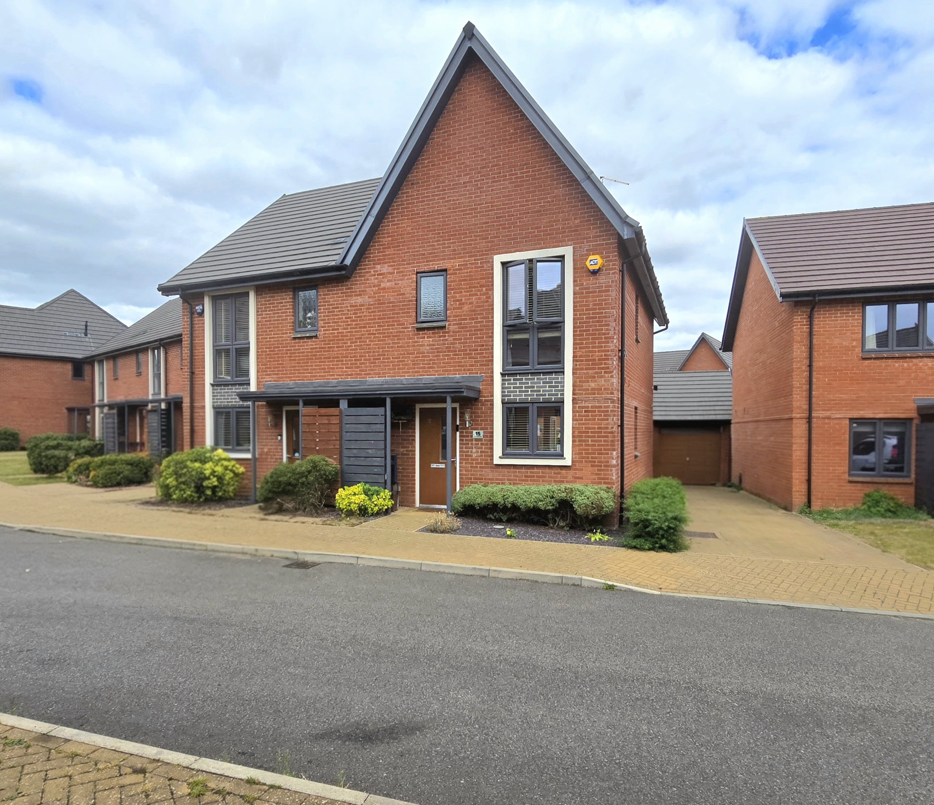 Bin store. Mature shrub frontage. Block paved path to entrance. Garage with electric door. Driveway for multiple off road parking.